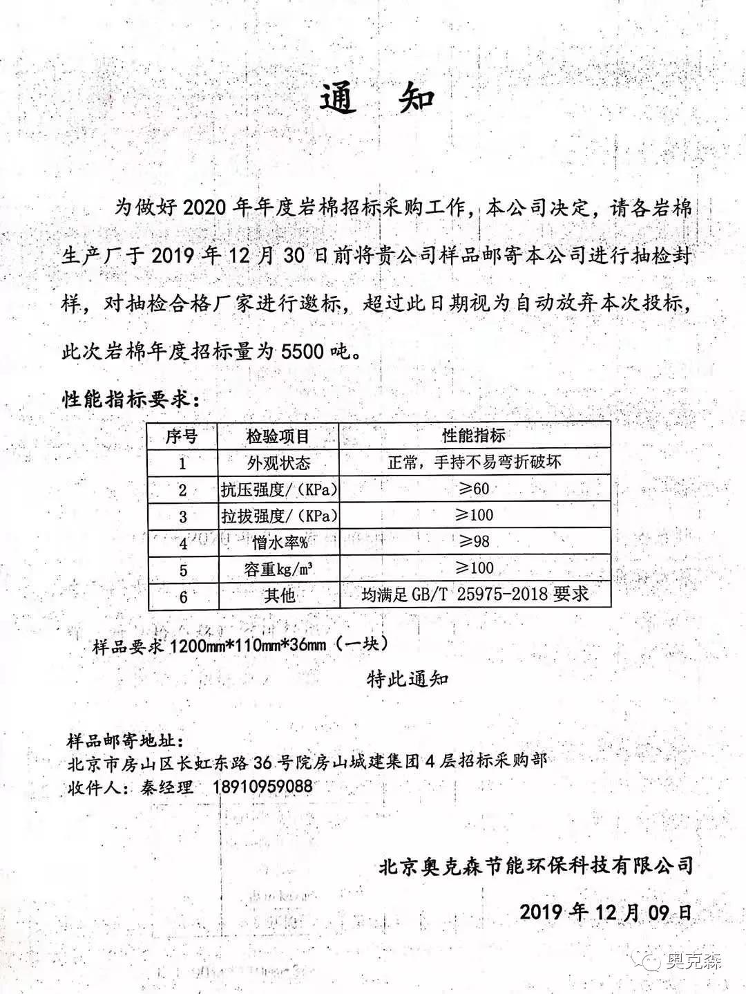 奧克森2020年度巖棉采購(gòu)招標(biāo)!
